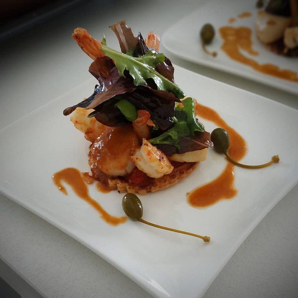 Concoctez une entrée, un plat et un dessert, faciles à emporter, remettre en température et dresser, pour un repas en amoureux à la maison : Cœur de gambas parfumées (en tarte fine feuilletée avec fondue de poireaux, jus corsé et jeunes pousses de salade). Brochettes yakitori de canard, méli-mélo de légumes et patate douce au gingembre Tatin caramélisée, sauce caramel beurre salé |