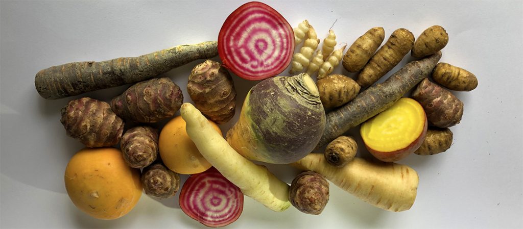 | Découverte des légumes racines anciens et oubliés. Réalisation de plusieurs recettes végétariennes savoureuses, à partir d’un assortiment de légumes racines et tubercules du moment. Mariages de saveurs intéressants pour une mise en valeur de ces produits qui reviennent avec succès sur les étals des primeurs. |