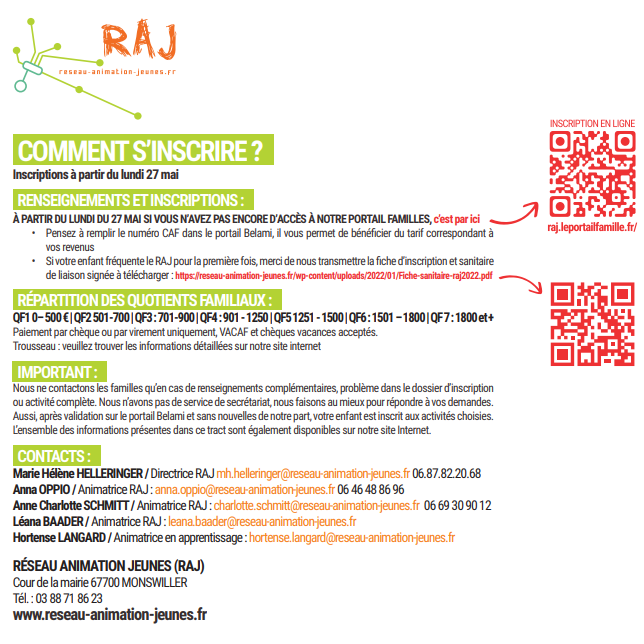 | Lors de ce stage de cuisine organisé par le RAJ Pays de Saverne, allons sereinement vers la rentrée en (re)découvrant une cuisine saine, avec des recettes express et fait maison. Les enfants (8 à 16 ans) confectionneront leurs repas de midi et leurs goûters. Pensez à votre tablier ! |
