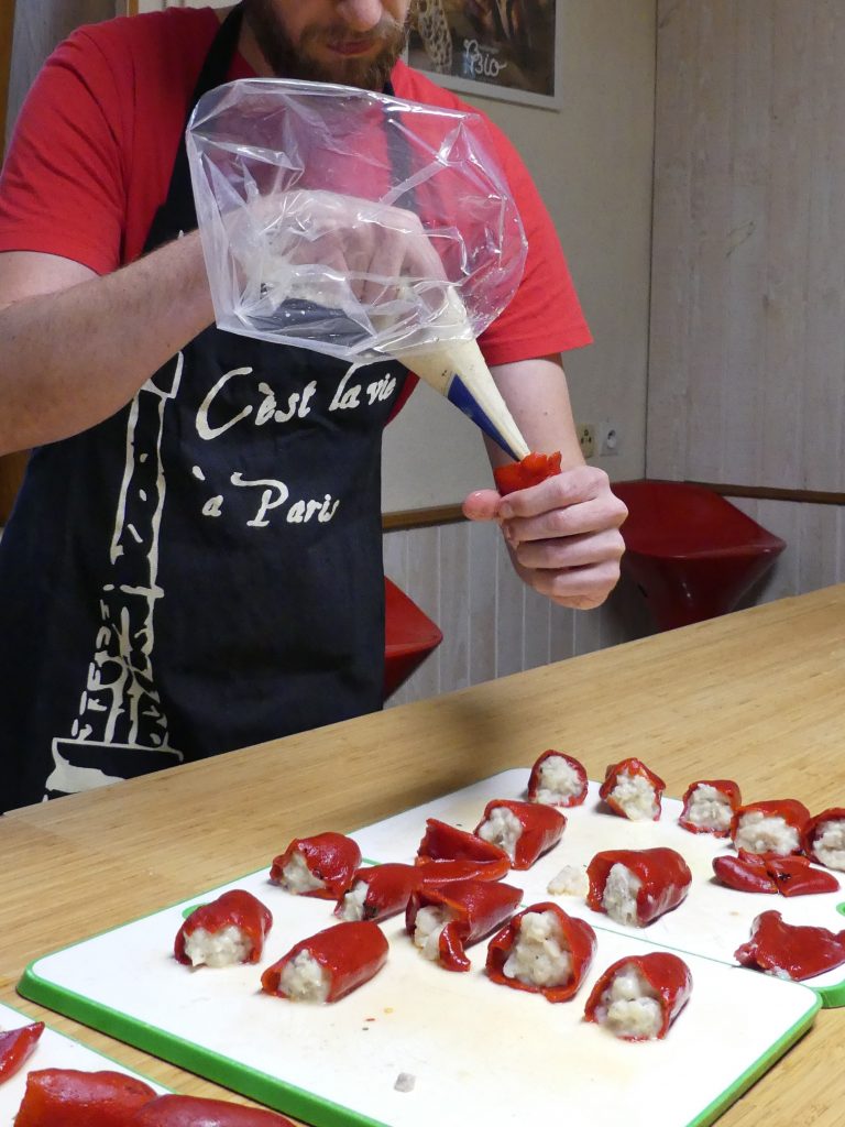 Préparation de bouchées apéritives traditionnelles espagnoles, aux légumes d’été : Tortilla, pimientos del Piquillo farcis, empanadas et boulettes en sauce…