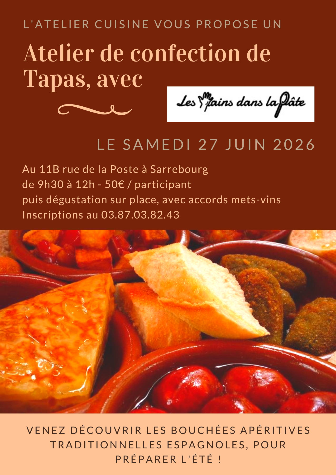 Venez découvrir les bouchées apéritives traditionnelles espagnoles, pour préparer l’été… Dégustation sur place à l’issue de l’atelier, accords mets-vins.