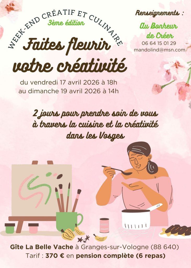 Le week-end créatif se déroulera au Gîte La Belle Vache à Granges sur Vologne (88640)